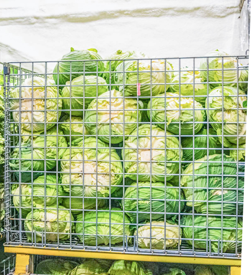 人参、大根、キャベツ、小松菜などの自社生産の野菜を加工し、さまざまなカット方法でミリ単位の細かいニーズに応えています。主にカップサラダや漬物の製造工場向けに卸しています。